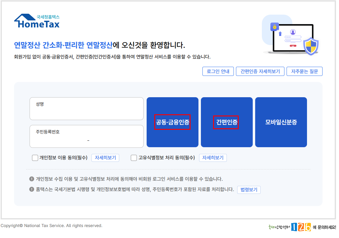 ✅ 홈택스 로그인하기